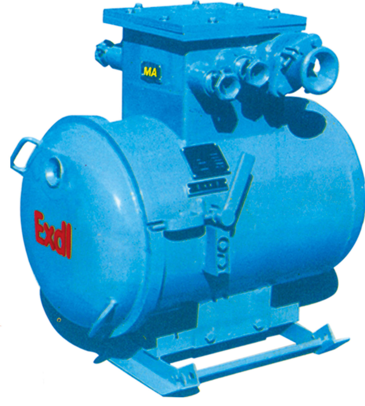綜合裝置主要由隔爆外殼、干式變壓器、機(jī)芯三部分組成。隔爆外殼為圓筒型,具有凸出的底和蓋,殼蓋與殼身采用轉(zhuǎn)蓋止口結(jié)構(gòu), 開(kāi)啟方便。外殼上部有一接線(xiàn)箱作為引進(jìn)和引出的電纜用.外殼右側(cè)裝有操作隔離開(kāi)關(guān)的手柄和檢查短路、漏電保護(hù)的試驗(yàn)按鈕。并有可靠的機(jī)械聯(lián)鎖裝置,保證當(dāng)隔離開(kāi)關(guān)閉合時(shí),殼蓋打不開(kāi);殼蓋打開(kāi)時(shí),隔離開(kāi)關(guān)不能閉合。殼蓋上方有一透明鏡,可以從外面觀(guān)察狀態(tài)指示燈。機(jī)芯主要由控制變壓器、交流接觸器、直流繼電器以及電子插件等組成。主變壓器與機(jī)芯的聯(lián)結(jié)采用端子板,檢修時(shí)機(jī)芯可獨(dú)立拿出。